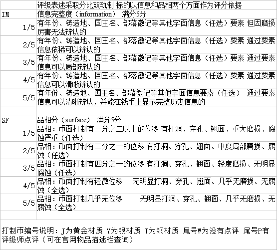 打制幣評級標準
