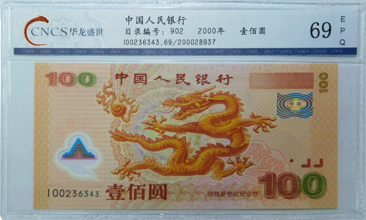 龍是中國的象征,中國人民對龍有特殊的情結。2000年,中國人民銀行為迎接新世紀發行了千禧年紀念龍鈔。千禧龍鈔是新中國發行的第一枚塑料紀念鈔,它的印制工藝代表了當時中國乃至世界的最高水準。