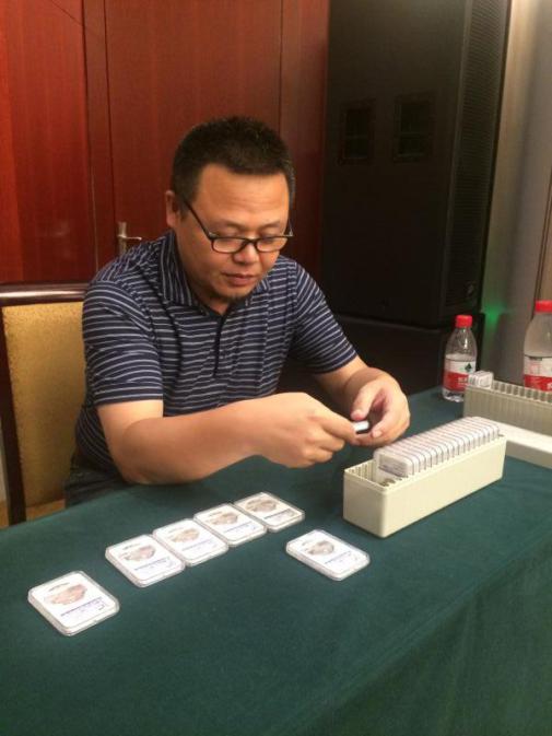 <沈陽造幣廠高級(jí)設(shè)計(jì)師劉鴻鵬現(xiàn)場(chǎng)為全國(guó)錢幣博覽會(huì)紀(jì)念章簽售>