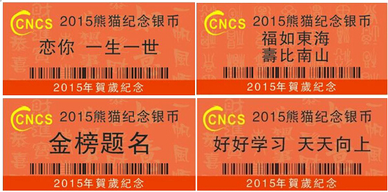 華龍盛世(CNCS) 2015年1月20日推出評級(jí)賀歲版標(biāo)簽,服務(wù)范圍包括2015羊年紀(jì)念幣、世界五大投資銀幣即:中國熊貓紀(jì)念幣、美國鷹洋普制銀幣(999純銀)、加拿大楓葉普制銀幣(999純銀)、奧地利音樂普制銀幣(999純銀)、澳大利亞考拉普制銀幣(999純銀)可以選用,每枚錢幣最低僅需15元服務(wù)費(fèi)即可得賀歲版標(biāo)簽。