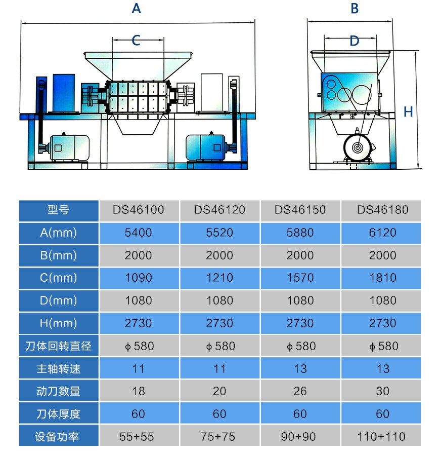 雙軸撕碎機可滿足各行業(yè)的廢料回收要求,適合撕碎較厚難碎物料,如:電子垃圾、塑料、金屬、木材、廢舊橡膠、包裝桶、托板等。可回收材料種類繁多,經(jīng)撕碎后的物料可直接回收使用或根據(jù)需求作進一步細化處理。適用于工業(yè)廢棄物回收、醫(yī)療回收、電子制造、托板制造、木材加工、生活垃圾回收、塑料回收、輪胎回收、造紙等行業(yè)的應用。此系列雙軸撕碎機擁有低速、大扭矩、低噪音等特點,采用PLC控制系統(tǒng),可自動控制,設有啟動、停止、反轉以及超載自動反轉控制功能。
